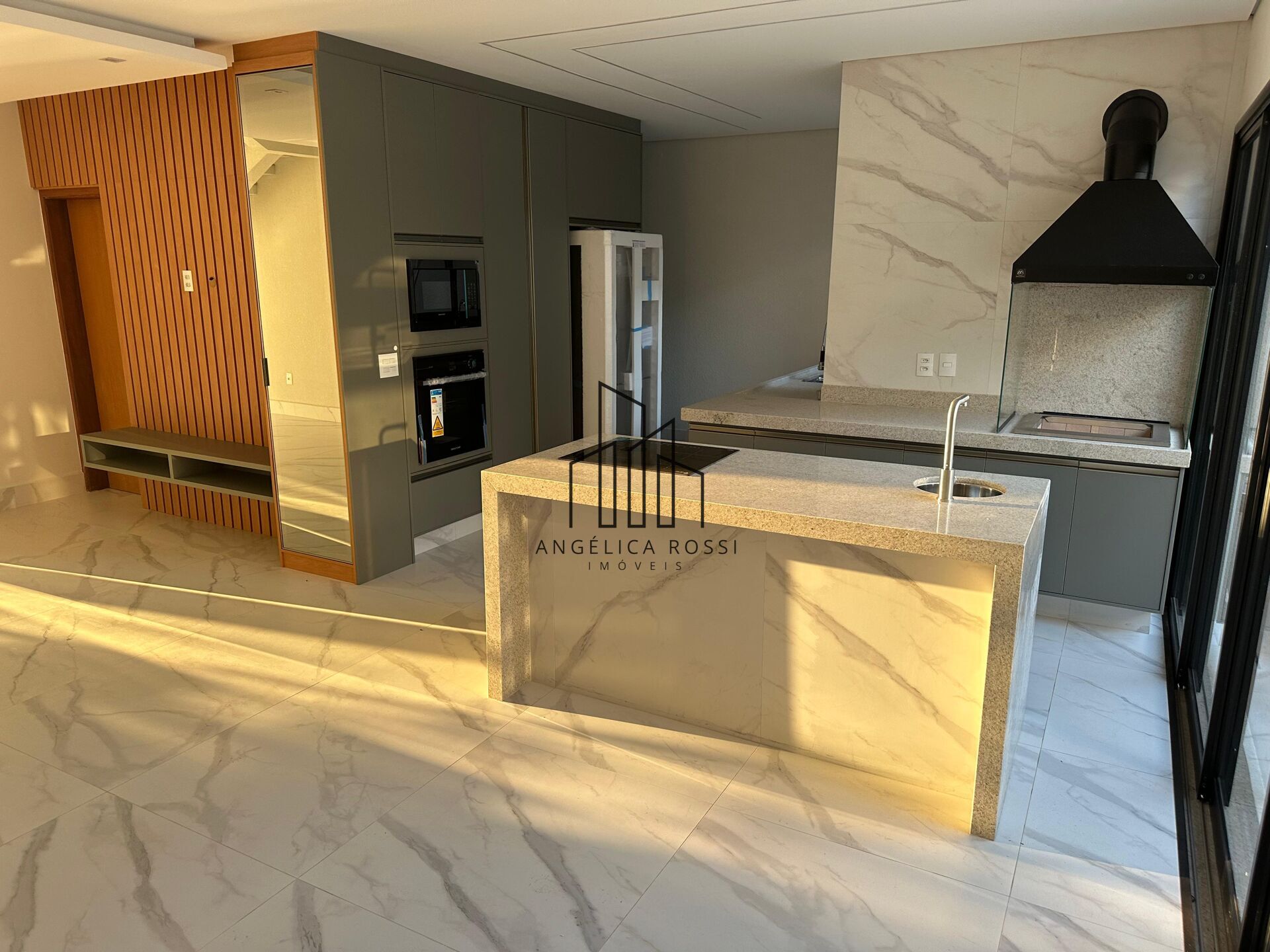 Cozinha equipada com eletrodomésticos e móveis planejados